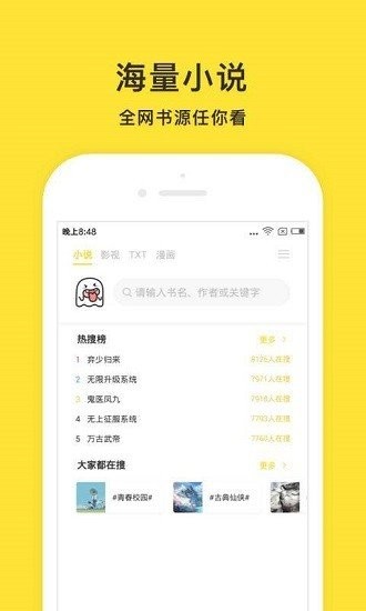1.免费搜索浏览各种资源,小说,漫画,影视资源应有尽有。