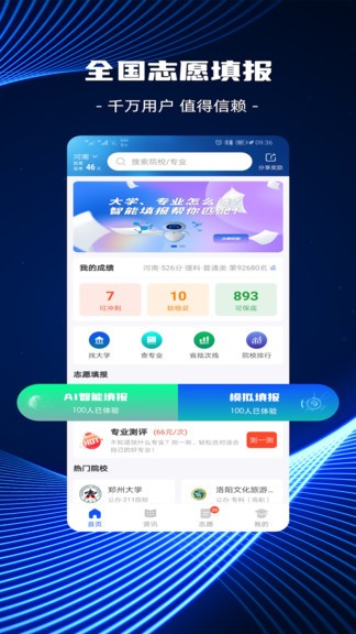 高考志愿AI填报最新版本可以让用户们在这里快速的预测院校录取,能够在这里填写自己分数,让AI来进行智能的分析,每次都可以推荐各种优质的院校,让大家都是可以进行详细的了解的,能够作为大家填写志愿的参考。