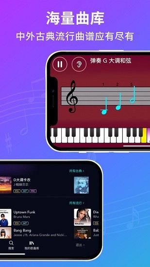 2、拥有丰富多样的曲库可以练习,让大家都可以快速筛选心仪乐谱。