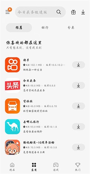 3、在主页上推荐的各种应用也是非常轻松的,能够快速查看应用详情。