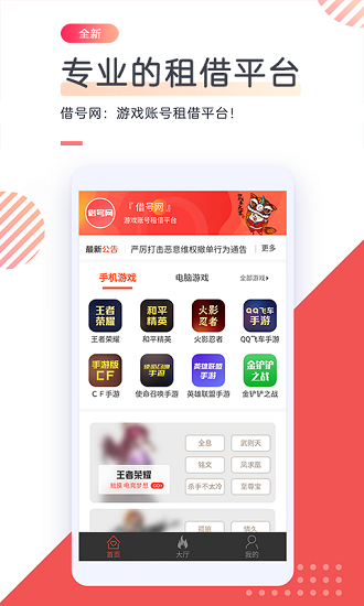 借号网app是一个非常专业的游戏账号租赁平台,每天都可以让各位玩家们在这里寻找各种游戏的账号,都是可以快速的进行筛选,每天也可以通过搜索来查找各类游戏账号。线上的所有游戏账号都是经过审查,让大家自由的选择。