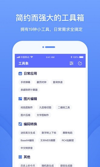 工具象最新版为大家整合了超级多的工具,日常想怎么使用都是可以的,全部都是免安装使用的小工具,启用速度也是超级快。线上为各项工具进行了划分,让大家选用起来都是非常自由的,轻松的进行筛选。