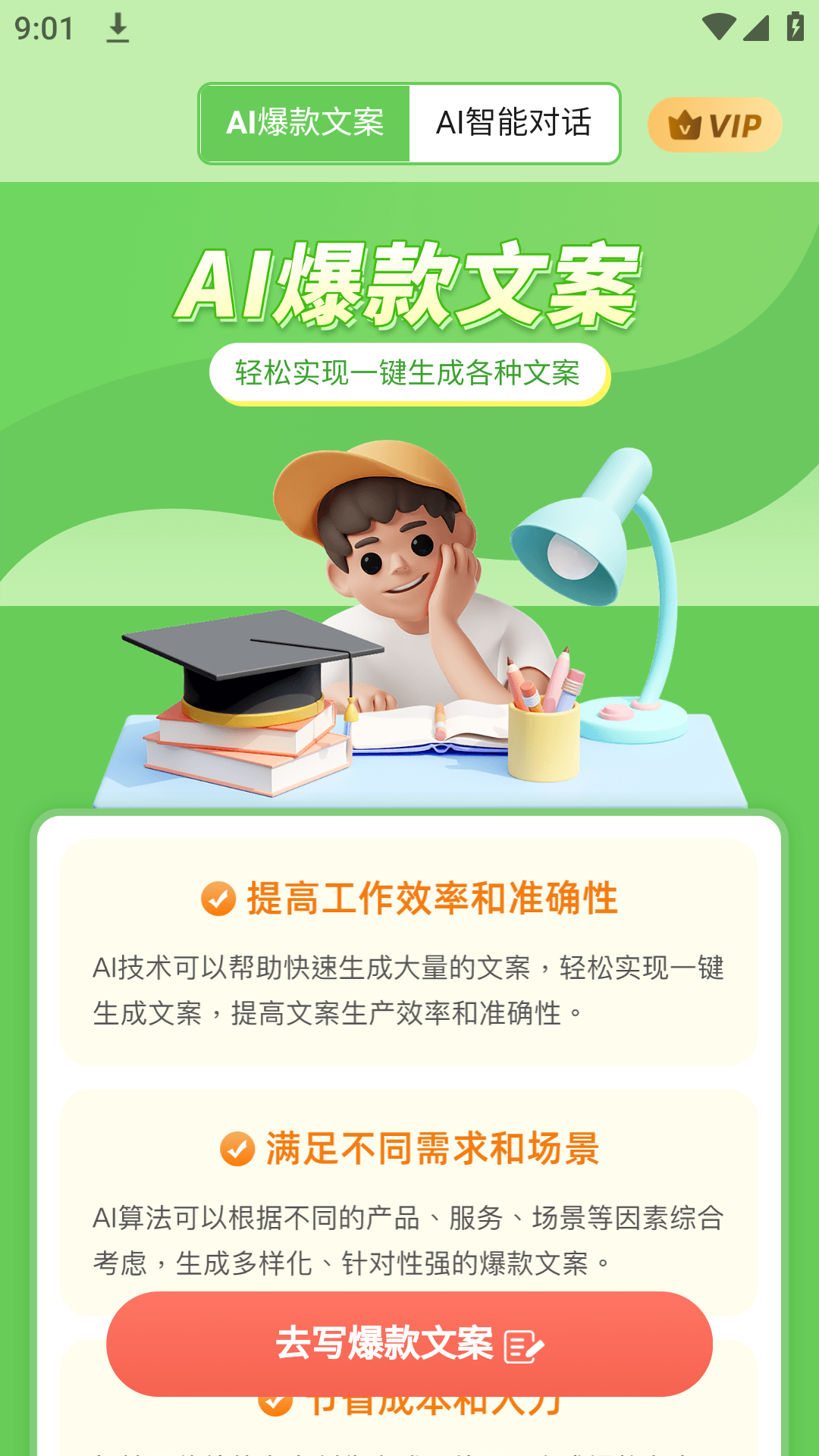 1.进入AI爆款文案app,你会看到ai爆款文案和ai智能对话两个选择