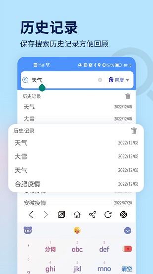 4、能够让大家查看各种各样的搜索历史,每次也可以及时的进行清除了。