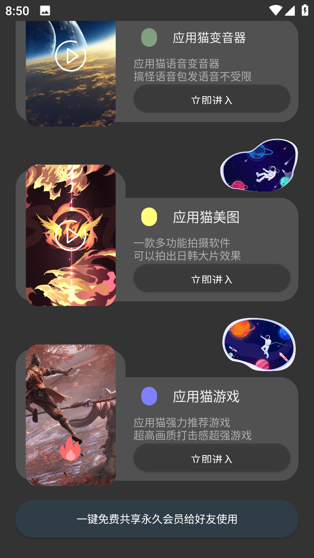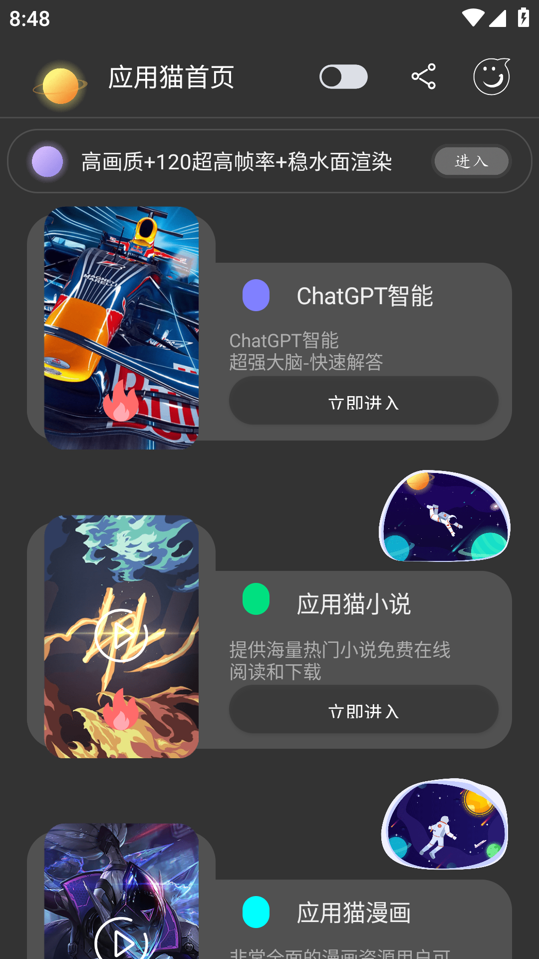 应用猫官网app为大家整合了非常多实用的应用,都是可以快速安装插件进行使用的,就像小程序一样方便,每次打开对应的应用都非常方便,在主页上为大家推荐了一些精品应用,都是可以免费安装的,使用起来超轻松。