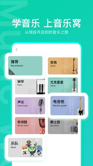 1、为大家带来了多种多样的音乐课程,支持学习超级多的乐器,非常方便。