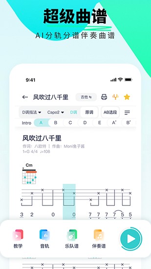 通过AI和和MIDI处理技术实现曲谱多轨道点读、播放和演示,并提供实录乐器分轨伴奏和人声,适合流行乐队、各乐器、职业乐手、街头艺人、乐器新手等,让你体验真实乐队伴奏,也可以随时随地即兴表演,实现一个人的乐队。