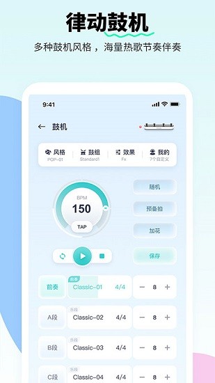 2、拥有非常实用的节拍神器,在练习乐器的时候都可以进行各种配置。
