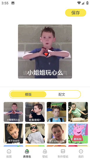 拥有丰富的表情包模板,你可以根据自己的喜好选择你喜欢的样式,并使用和制作自己专属的表情包。