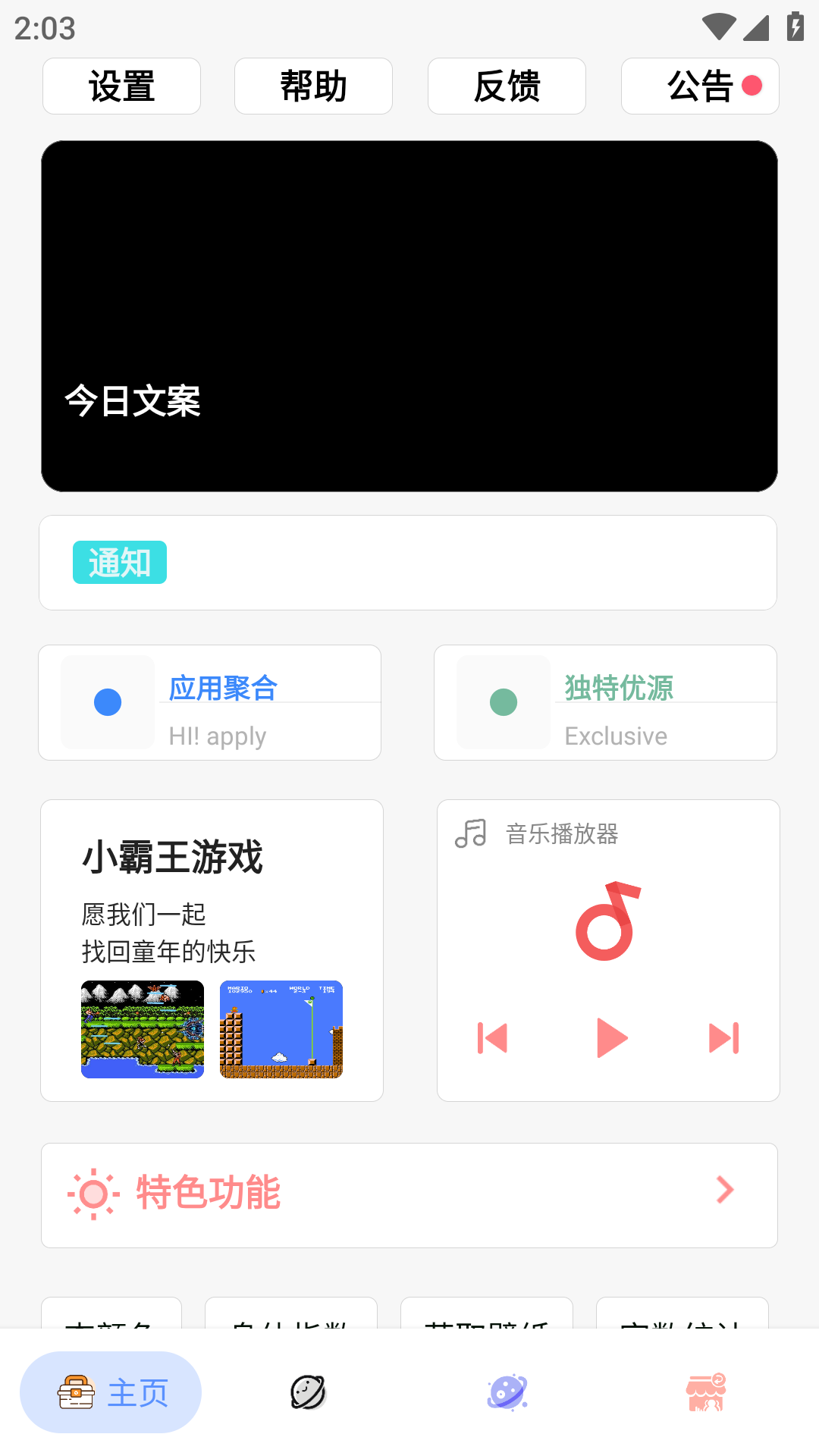 黑软PRO是一款为大家聚合了多种功能的手机黑科技工具箱,大家可以在这里玩游戏,听音乐,看小说,找壁纸等等功能一应俱全。还为大家带来了分享板块,你可以在这里找到多个网盘的最新软件资源,全部都能一键免费下载安装。