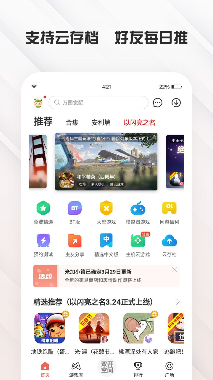 还新增了H5游戏分类,你可以发现许多有意思的H5游戏,在新版本中更是优化了录屏功能,用户能够轻松的录制各种手游的视频,不管是攻略,还是安利新教派你都可以通过视频让其他玩家知道,相比较于图文更加简单的让新手玩家了解到游戏。