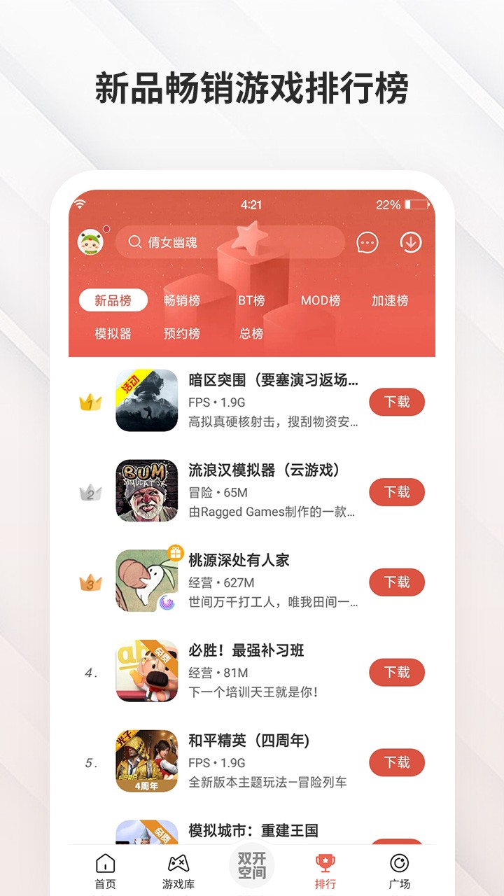 5.精品游戏:有各种首次和畅销的游戏,以满足不同群体对游戏的需求。