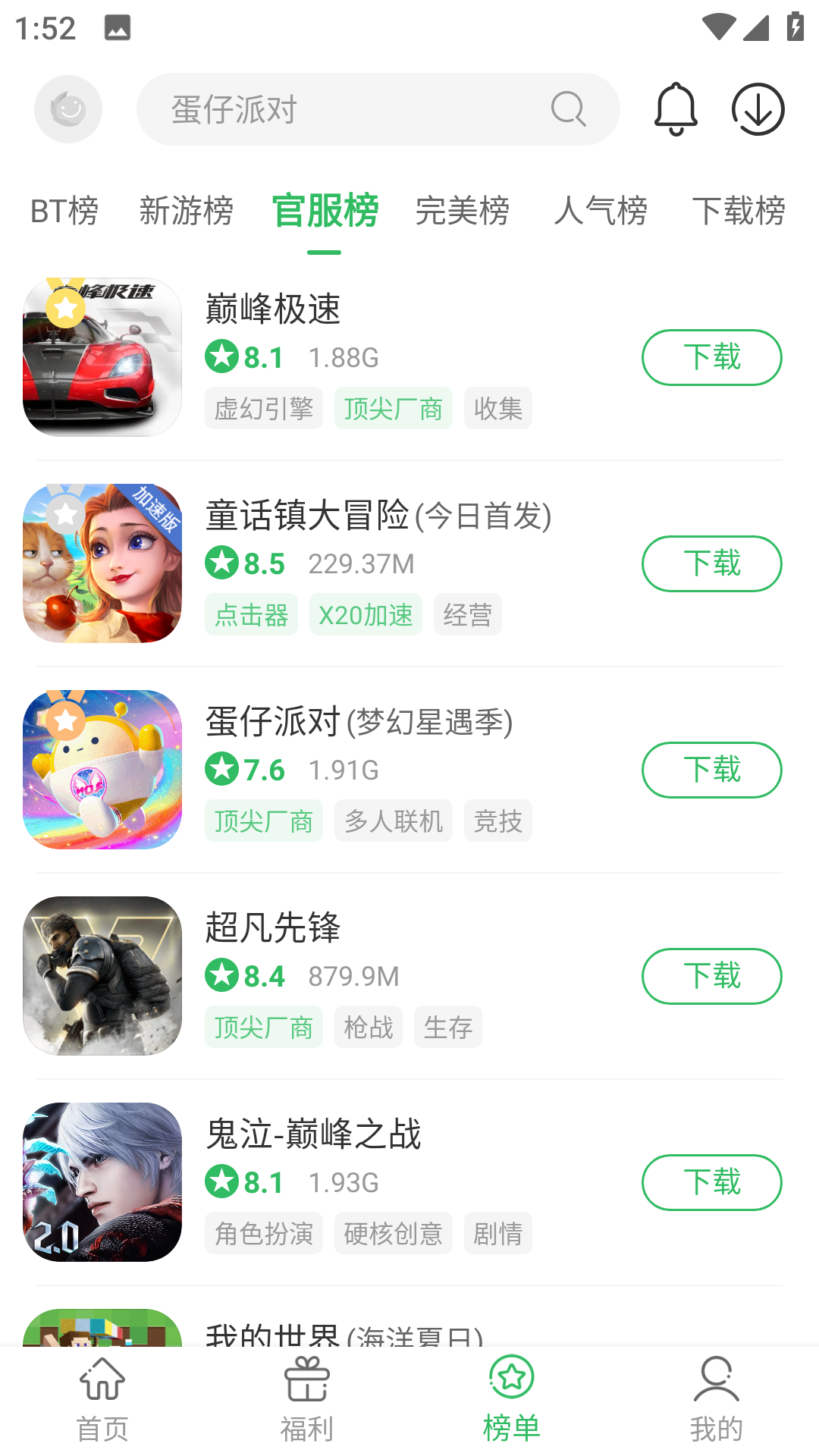 3.在榜单里面,你可以看到各种游戏排行榜;