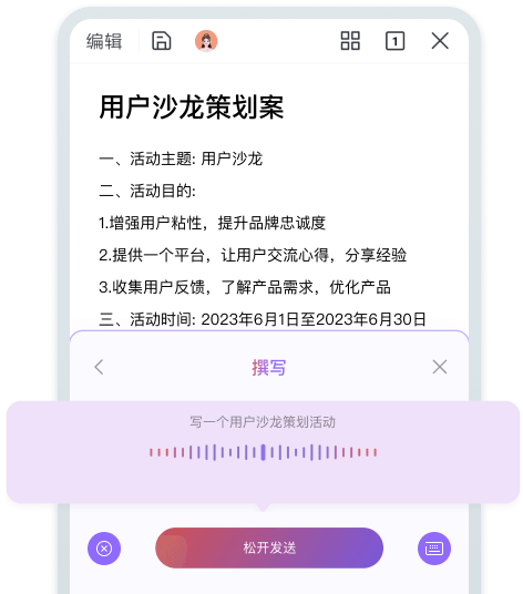 手机敲字太麻烦?动动手指,或者语音告诉它你想创作的方向,文章马上写好。
