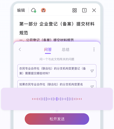 手机上阅读长文档不方便?交给 WPS AI,不仅能快速提炼重点,还可以语音发起提问。