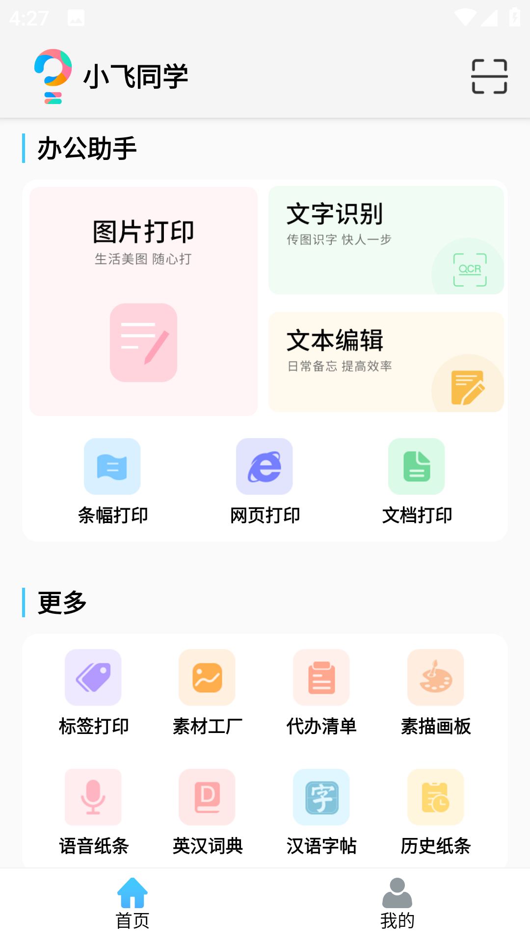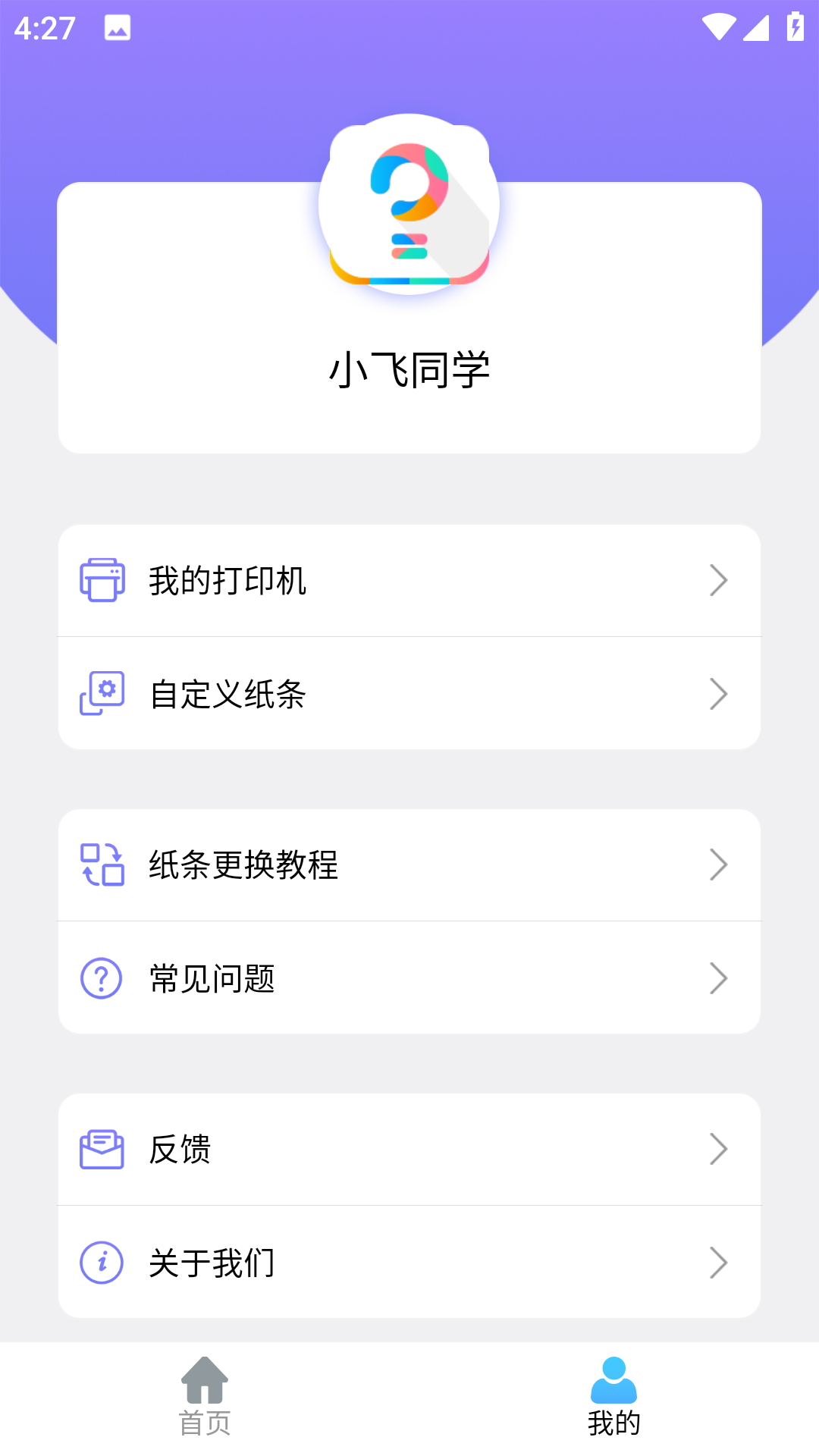 2.进入小飞同学错题打印机app,点击我的,然后点击我的打印机