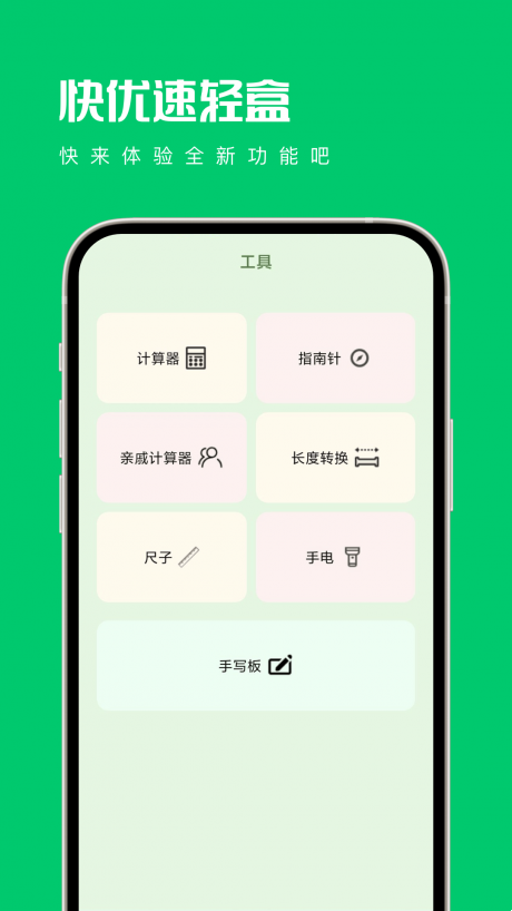 快优速轻盒app是一款功能丰富的手机工具箱,为大家带来了很多生活中实用的功能,让你可以通过这款软件完成生活中很多需要用到手机的场景。操作简单实用方便,完全免费不需要花钱,快来下载体验吧!