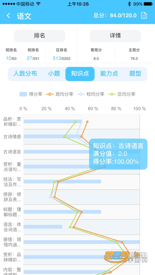 1、查看成绩、排名、学科均衡性、成绩对比、进退步、分段统计分析