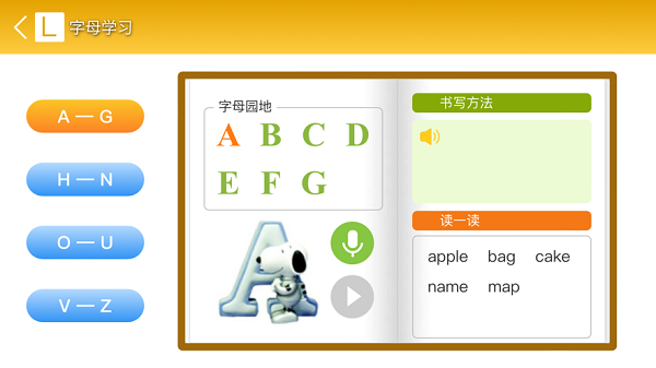 2、在这里也可以进行字母学习了,都是可以轻松点读各个字母。