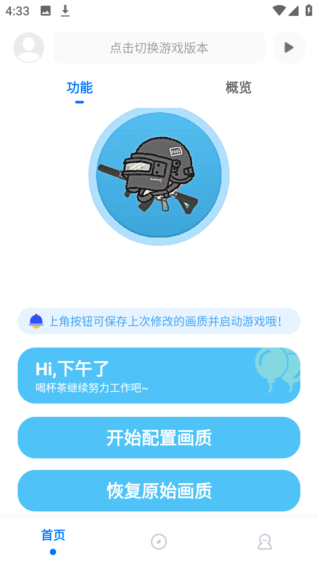 1.进入殇痕画质助手app,点击开始配置画质按钮