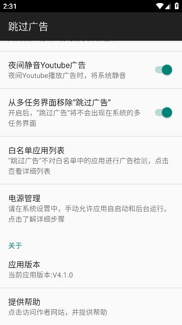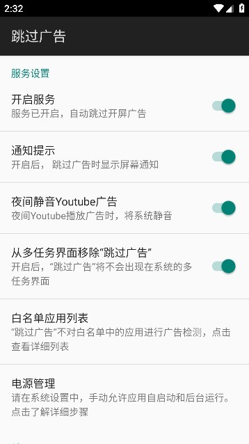4、找到“跳过广告”并将状态设置为开启