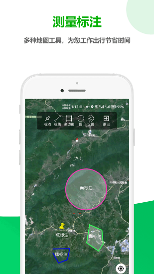 各种地图工具,距离测量,面积测量,海拔查询等功能。