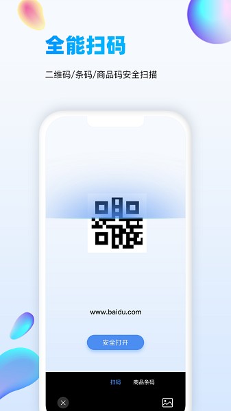 二维码扫描,自动对焦,快速扫描任何二维码,智能识别相册中的二维码图片,读取二维码内信息,安全识别可复制分享二维码内容。