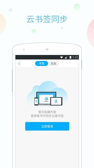 无缝连接115帐号,随时畅享云服务。支持快捷登录、网络书签即时同步。