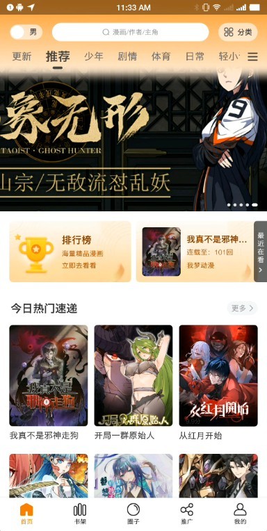 2、可以让大家在主页上查看各种推荐的漫画,近期热门漫画也能直接看。