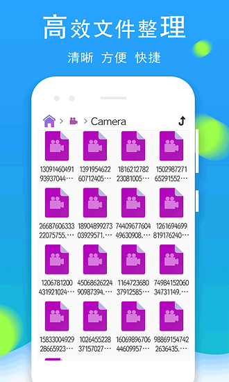管理手机上的视频文件, 支持格式:asf, avi, flv, mp4, mpeg, wmv 等。