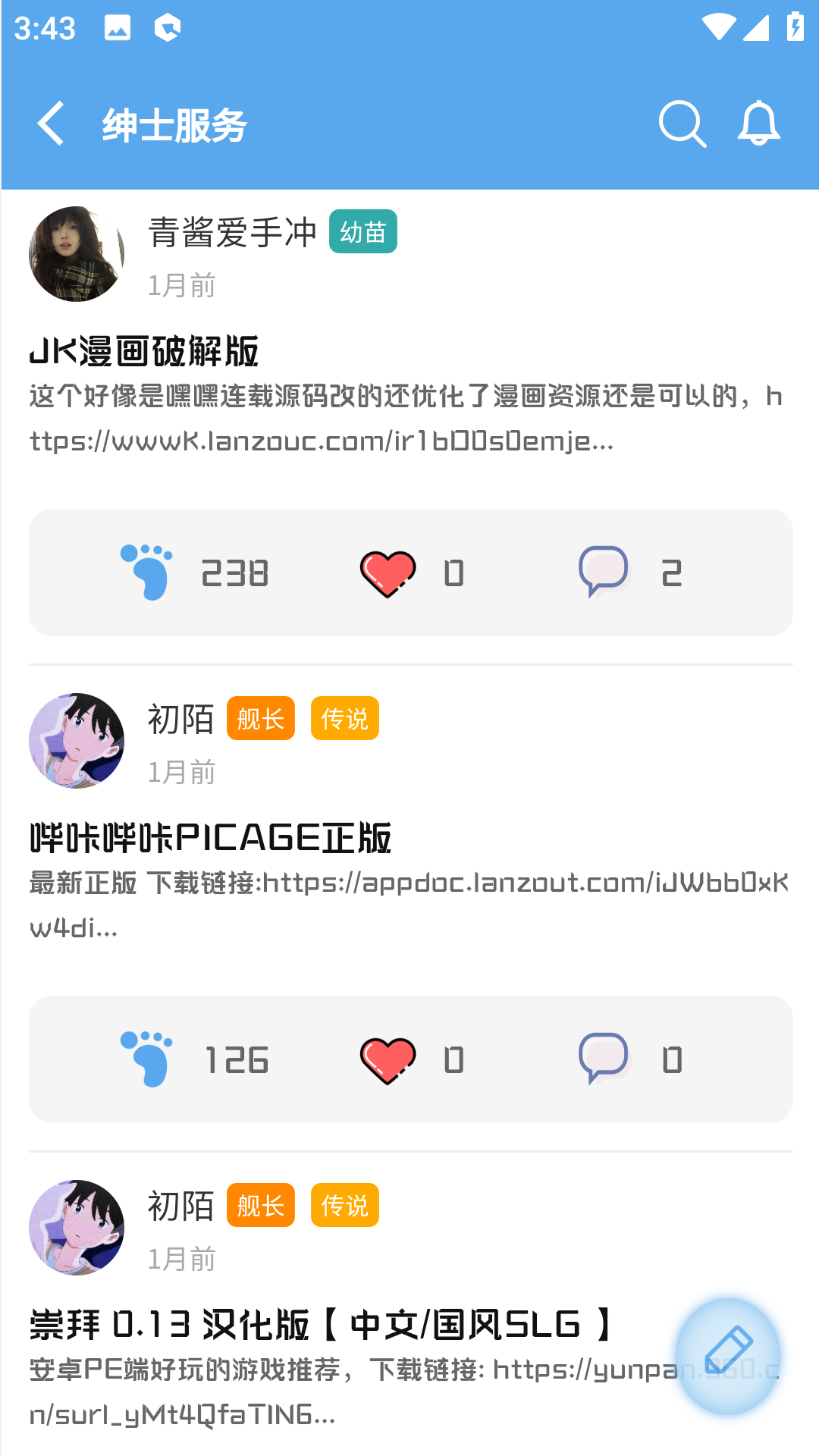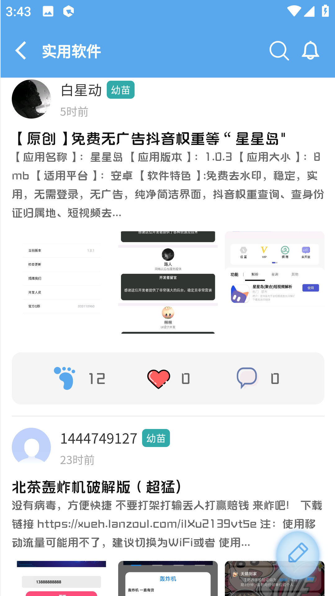 5.每个人都可以发帖分享自己的手机资源,有大量用户在线互动评论。如果他们认为你的资源很好,他们会给你点赞。