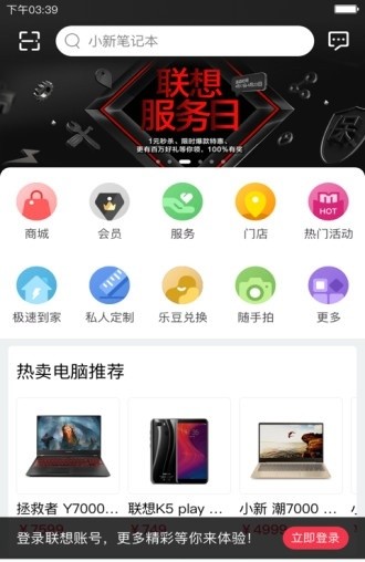 2、提供联想权威产品:电脑、ThinkPad、智能电视、选项、服务产品等,官方质保、无忧服务、新品体验,不定期推出会员特惠产品。