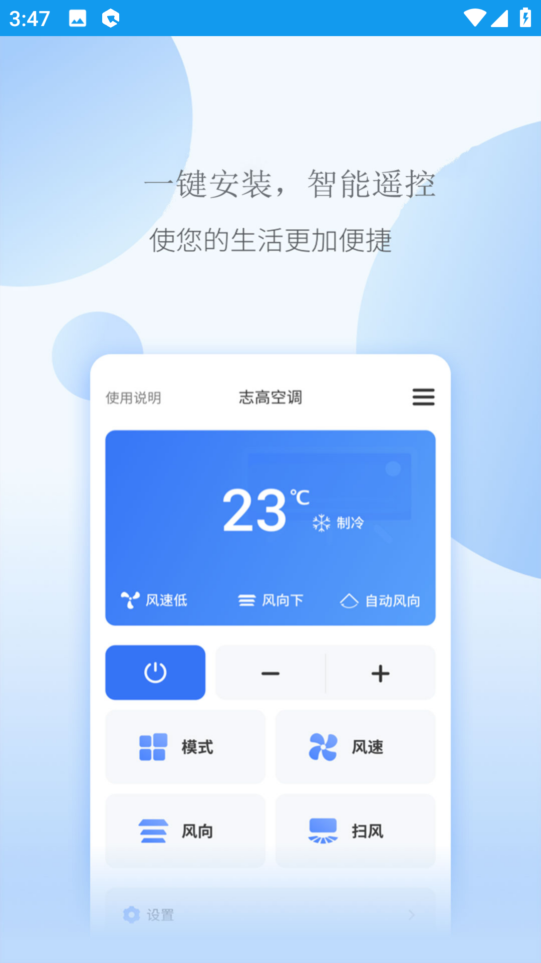 4.它是一款智能空调遥控器,可以查看空调的当前风速、模式、温度和方向;