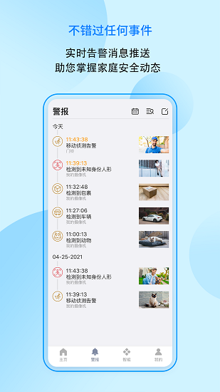 报警消息推送,让大家每天都可以实时收取侦测报警信息。
