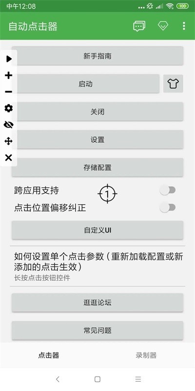 自动点击器通过浮动控制面板以启动/结束自动点击。您可以使用控制面板在屏幕上添加点击位置实现自动点击。