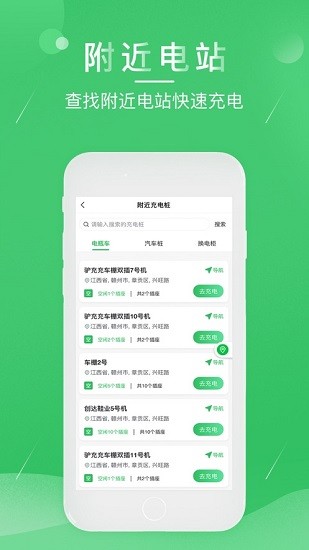 2、让大家在这里快速的查看附近的充电站点,能够快速的导航前往充电。
