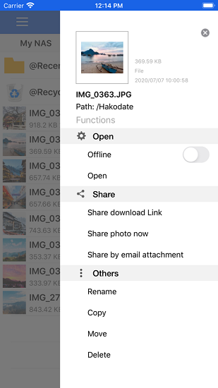 在「我的装置」里汇入行动装置里或云端服务上的档案,即可将档案同步到 NAS 上存储。