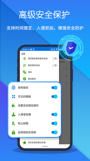 指纹应用锁是一款保护隐私与安全的软件。相信所有人都很反感自己手机里的某些应用被人打开查看,比如邮件,短信。你只需要将你不想被其他人查看的应用设置进去应用安全锁里,设置上密码,查看的时候都需要输入密码,可以有效的保护你的隐私与安全信息。