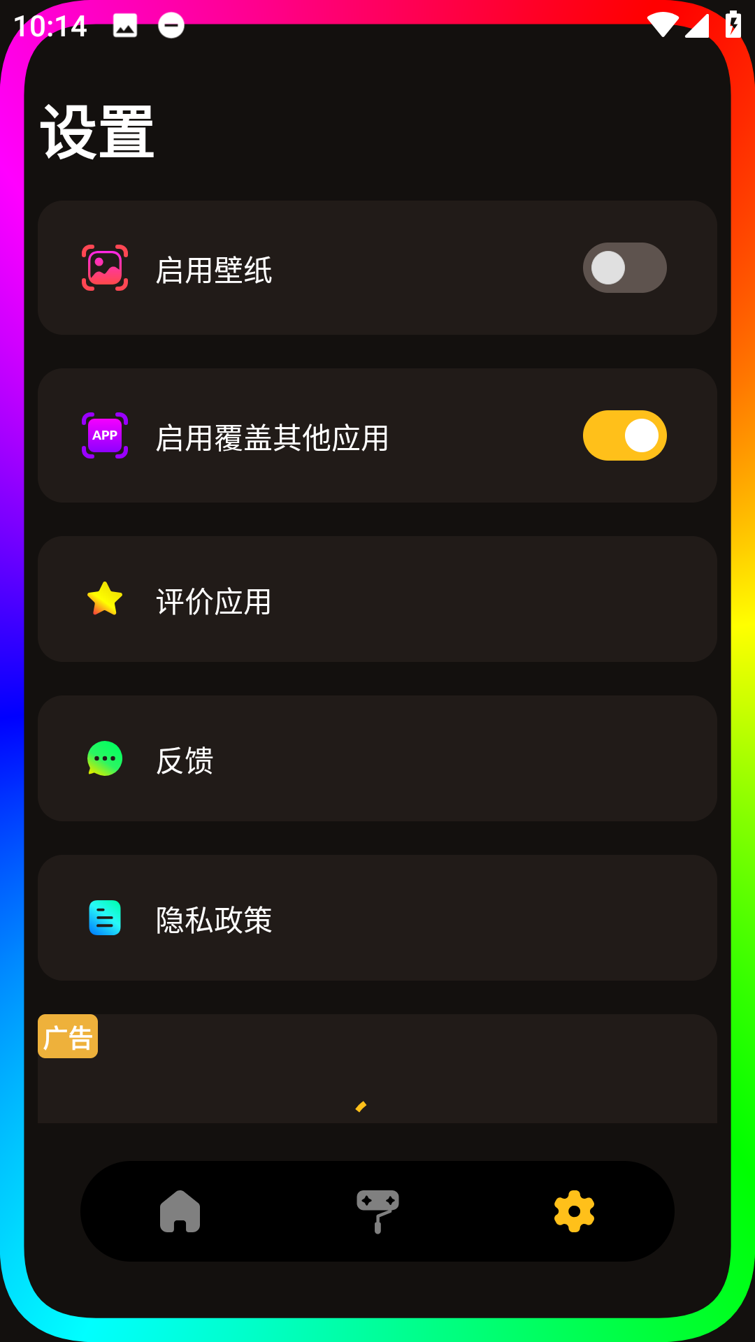 圆形灯RGB是一款自定义手机边框壁纸的应用软件,让你可以开启手机边框新开跑马灯特效,自由设置炫酷的颜色和图案,让你的手机成为新开的rgb灯。使用简单方便,一键即可完成壁纸应用,快来下载体验吧!