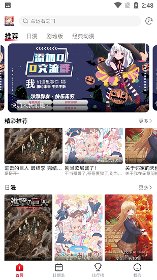2、每天可以在这里查看更新的周期时间表,了解各种新番更新的时间。