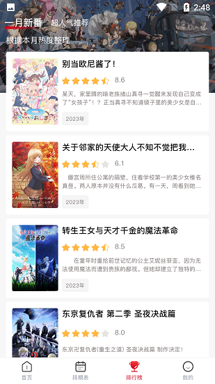 2、日常可以查看每个季度的新番资源,能够让大家根据喜好来观看心仪动漫。