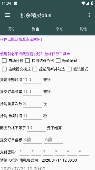 秒杀精灵plus可以辅助大家在各个电商平台上秒杀自己心仪的产品,能够及时的参加各种秒杀,让机器帮助大家进行请购,无需自己手动点击,你可以在这里设置各种点击的参数,在秒杀产品之前都配置好,操作就更加轻松。