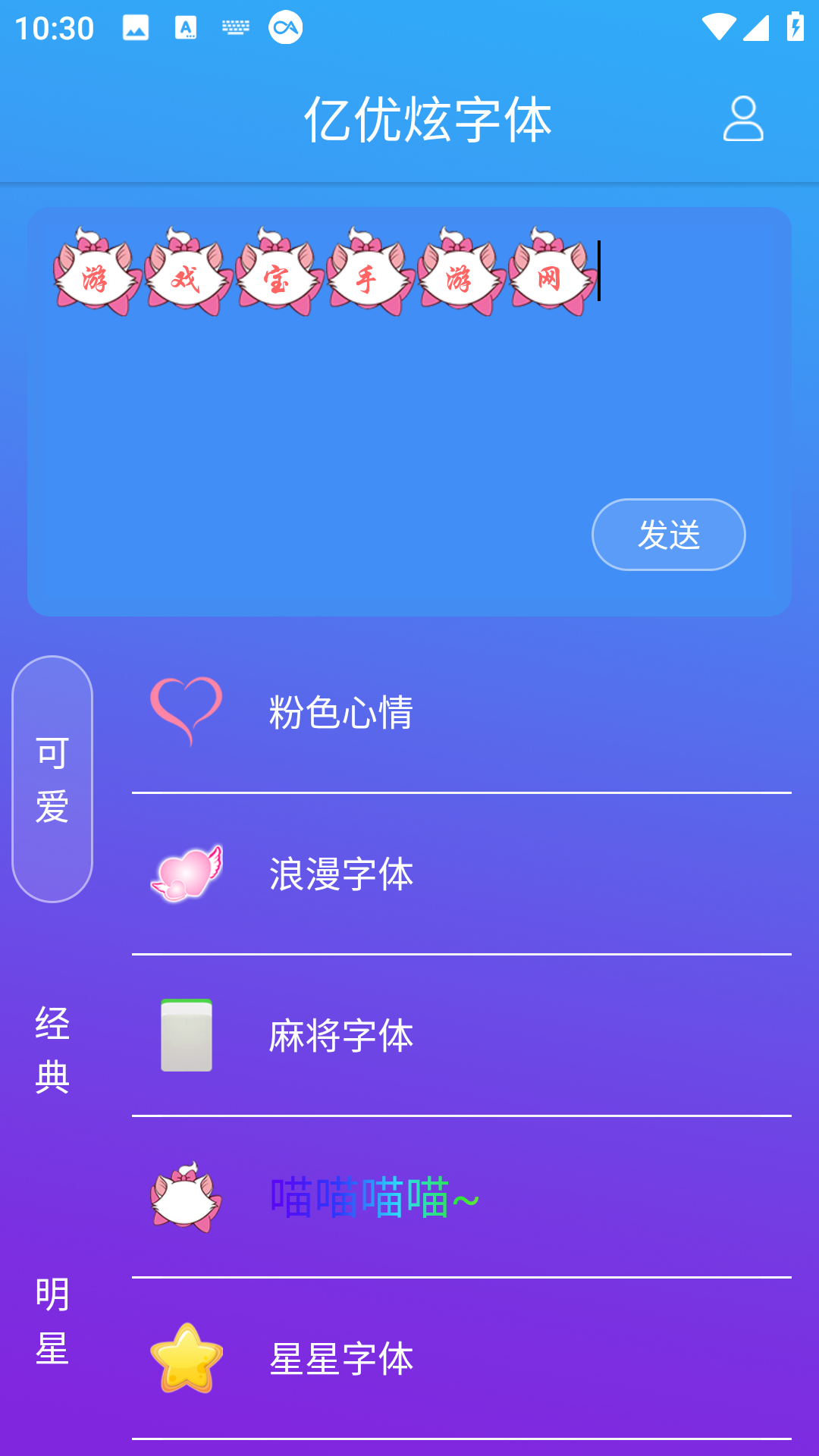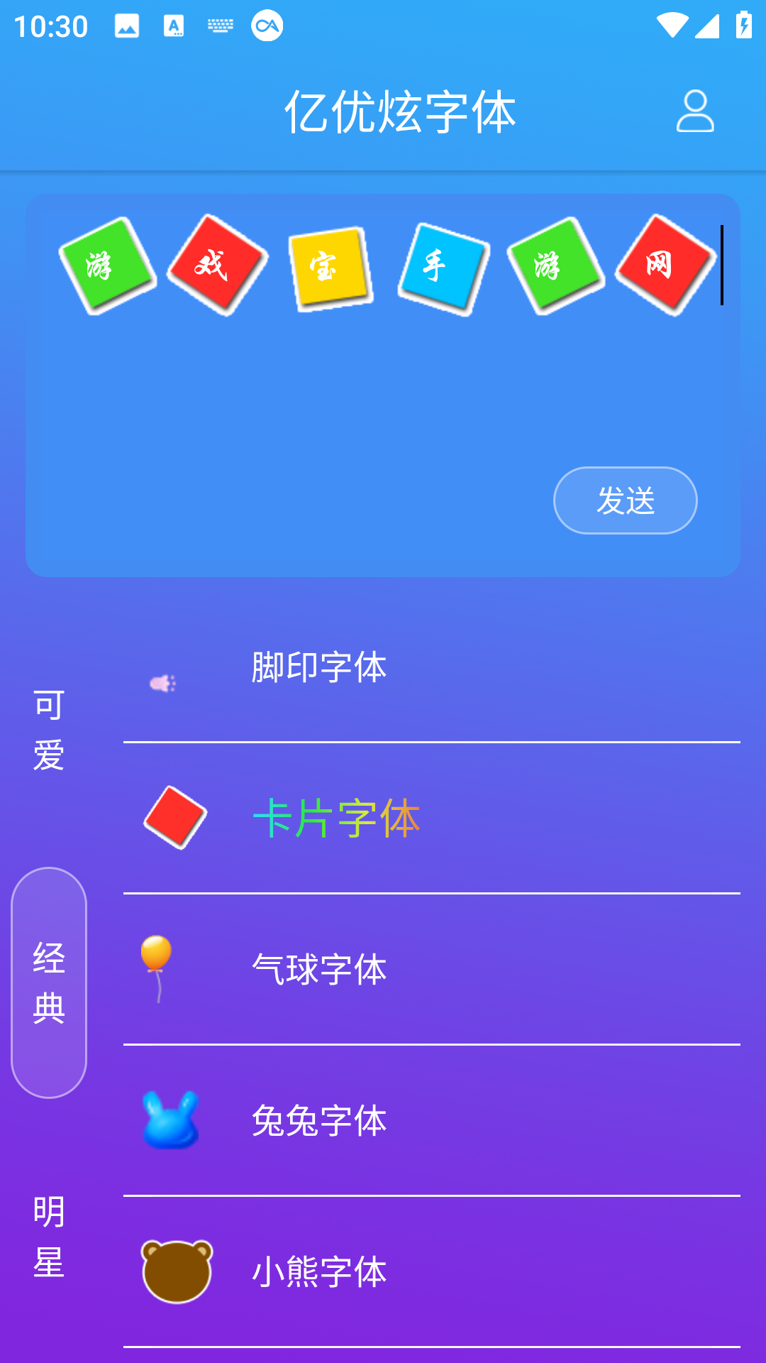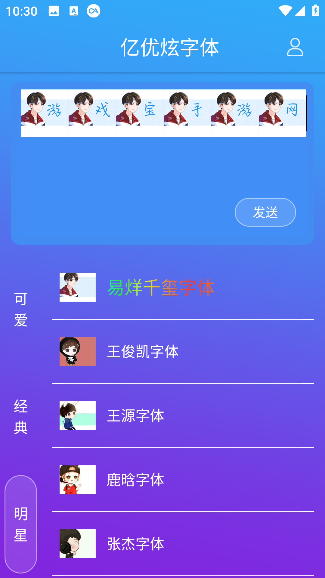 4.选择喜欢的字体后点击发送按钮,即可将完成字体转换的文字发送到对应的软件