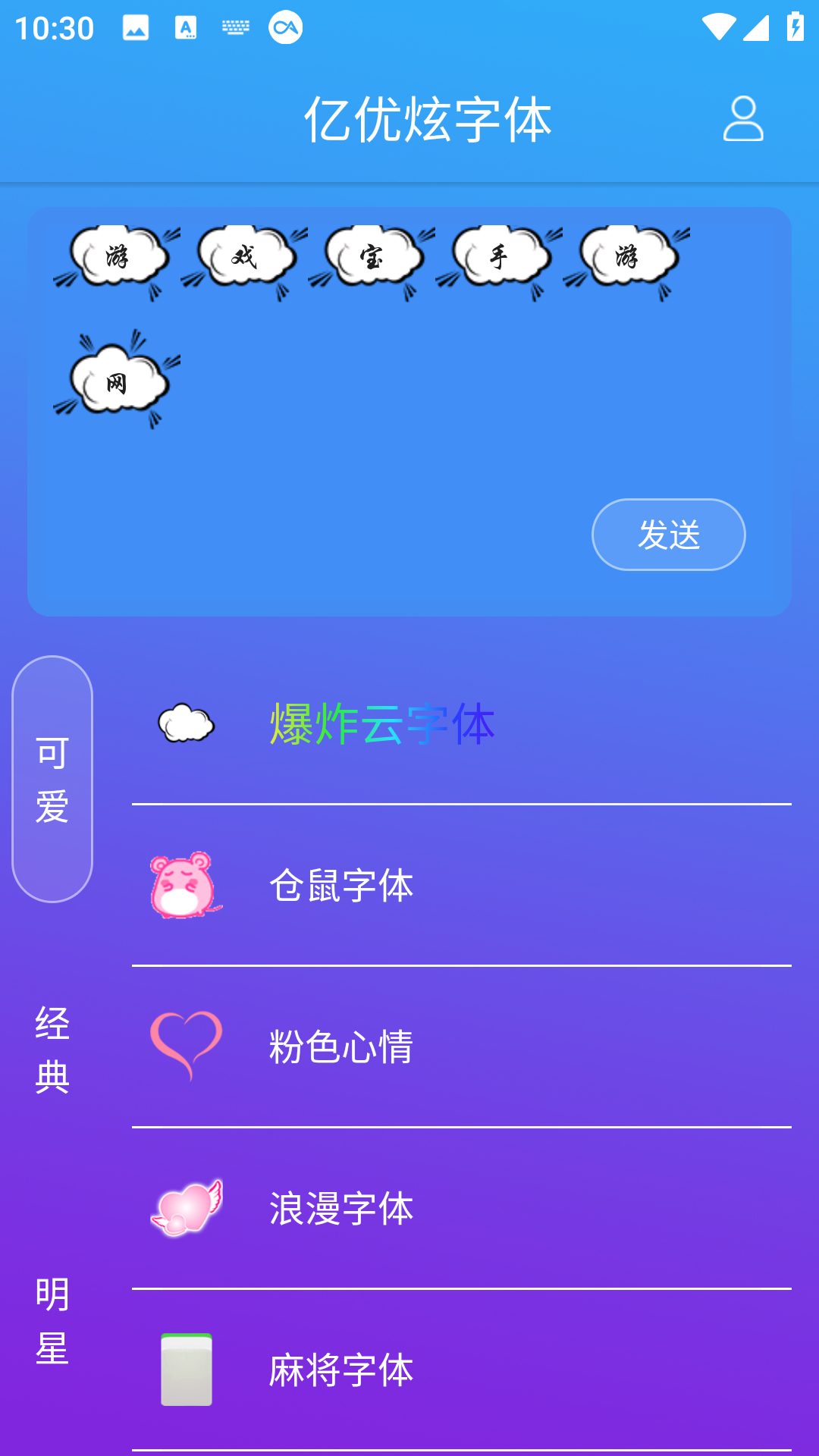 亿优炫字体app是一款可以让你体验超多热门字体的手机软件,用户可以根据自己的喜好选择不同的字体,一键即可完成转换。完成字体转换点击发送即可体验全新的聊天字体,为大家带来了超多热门字体完全免费使用。