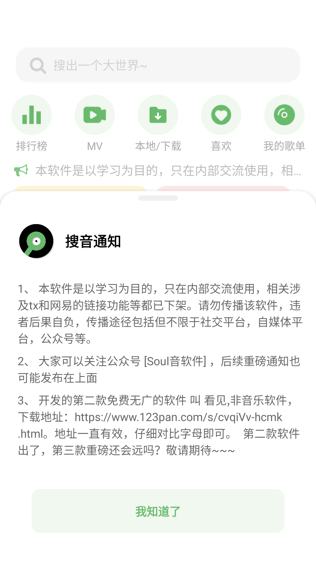 搜音app也就是大家熟悉的Soul音在更新4.5.0最新版本后改名为搜音app。为大家带来了免费的音乐资源,让你可以随时随地听到自己喜欢的歌曲。多个音乐播放源,让你可以不用担心找不到想要的歌曲,还能缓存无损flac音质,完全免费不需要花钱,还在等什么快来下载体验吧!