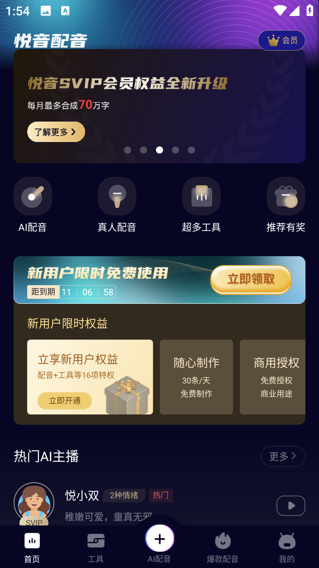 制片帮悦音app最新版本为大家带来了ai配音功能,让用户可以更加简单快速的完成文字配音,视频配音等等工作,而且一键可以导出保存非常的方便。为大家带来了超多热门的网络配音语音包,你可以自由选择喜欢的声音进行配音。