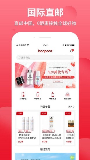 bonpont为大家带来了一站式的国际化购物平台,每天想怎么购物都是可以的,能够根据自己的需求在分类中选择心仪的好物,都是正版产品,全部都是直销的,让大家可以合并下单自己想买的产品,及时的查看物流的情况。