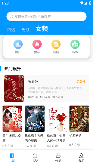 1、平台上可以查看各种新书以及经典的书,天天都会不定时的上新小说。