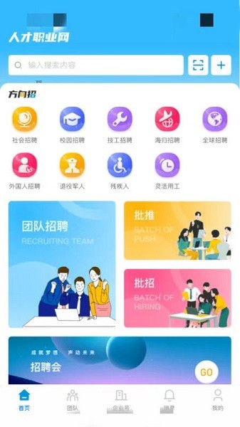 可进入“团队招”或“团队”主导航,查找应聘企业招聘团队,也可通过求职者创建的求职团队,向企业求职。您也可以创建自己的求职团队,邀请朋友、同事、同学或其他有意人才,一起去求职。