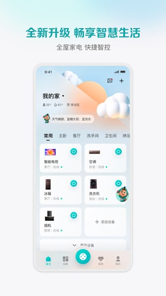 热门场景一键直达,支持个性化定制,联动全屋家电。